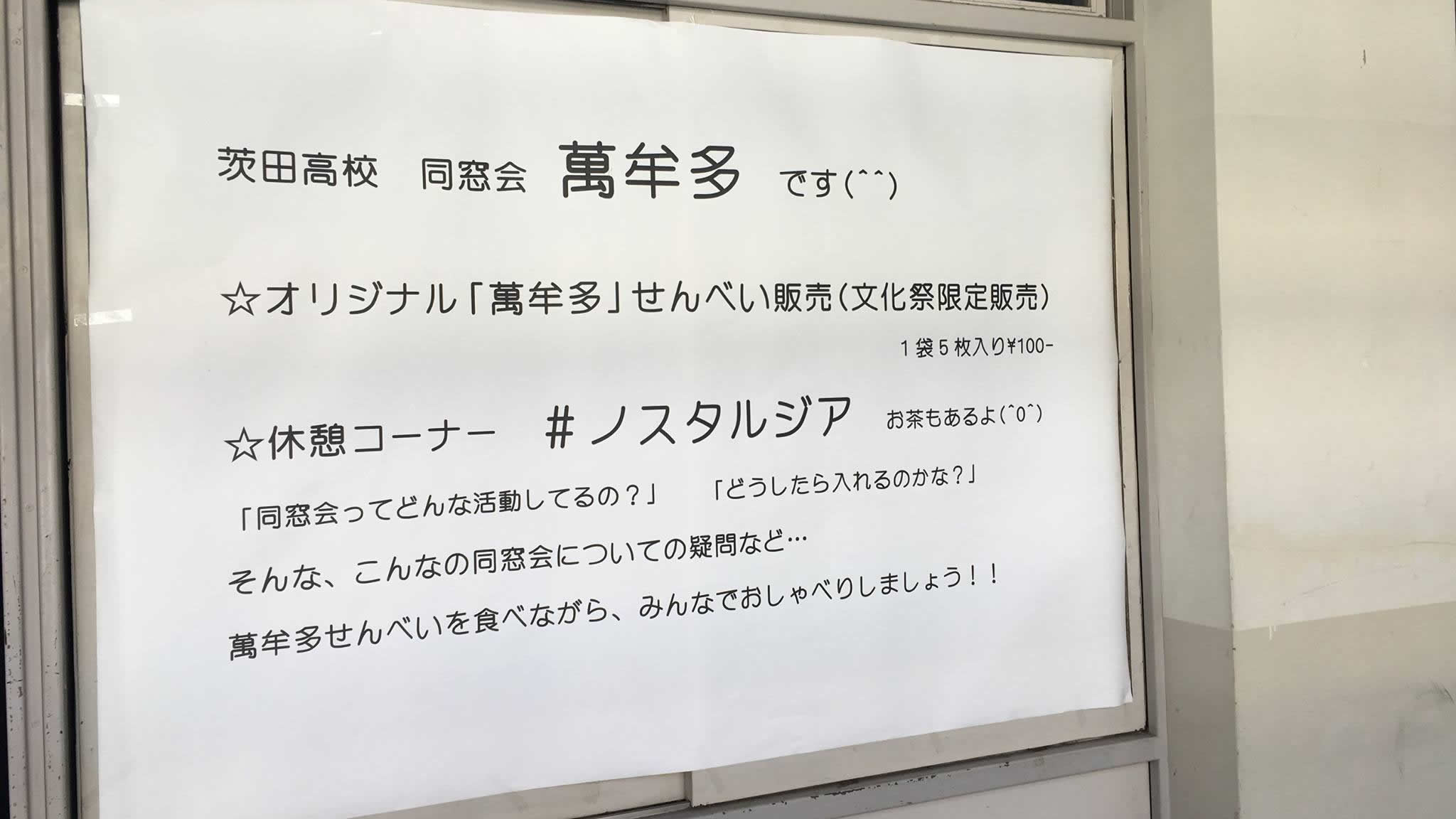 2018年秋の文化祭では、例年通り萬牟多せんべいを販売させていただき、在校生や保護者の方々、先生方と、もちろん卒業生にも大好評でした。